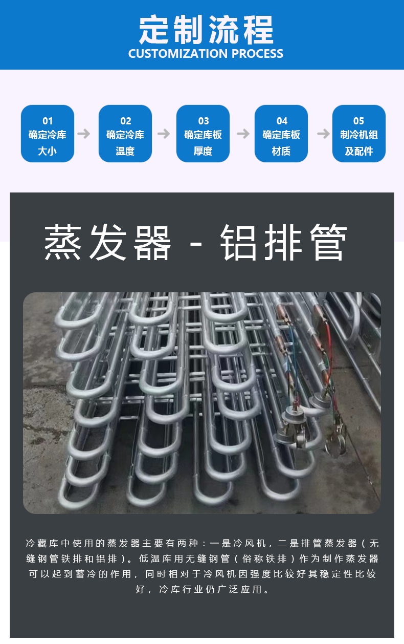 冷库铝排管蒸发器两翅/三翅/多翅冷库搁架小型排管冷库定制