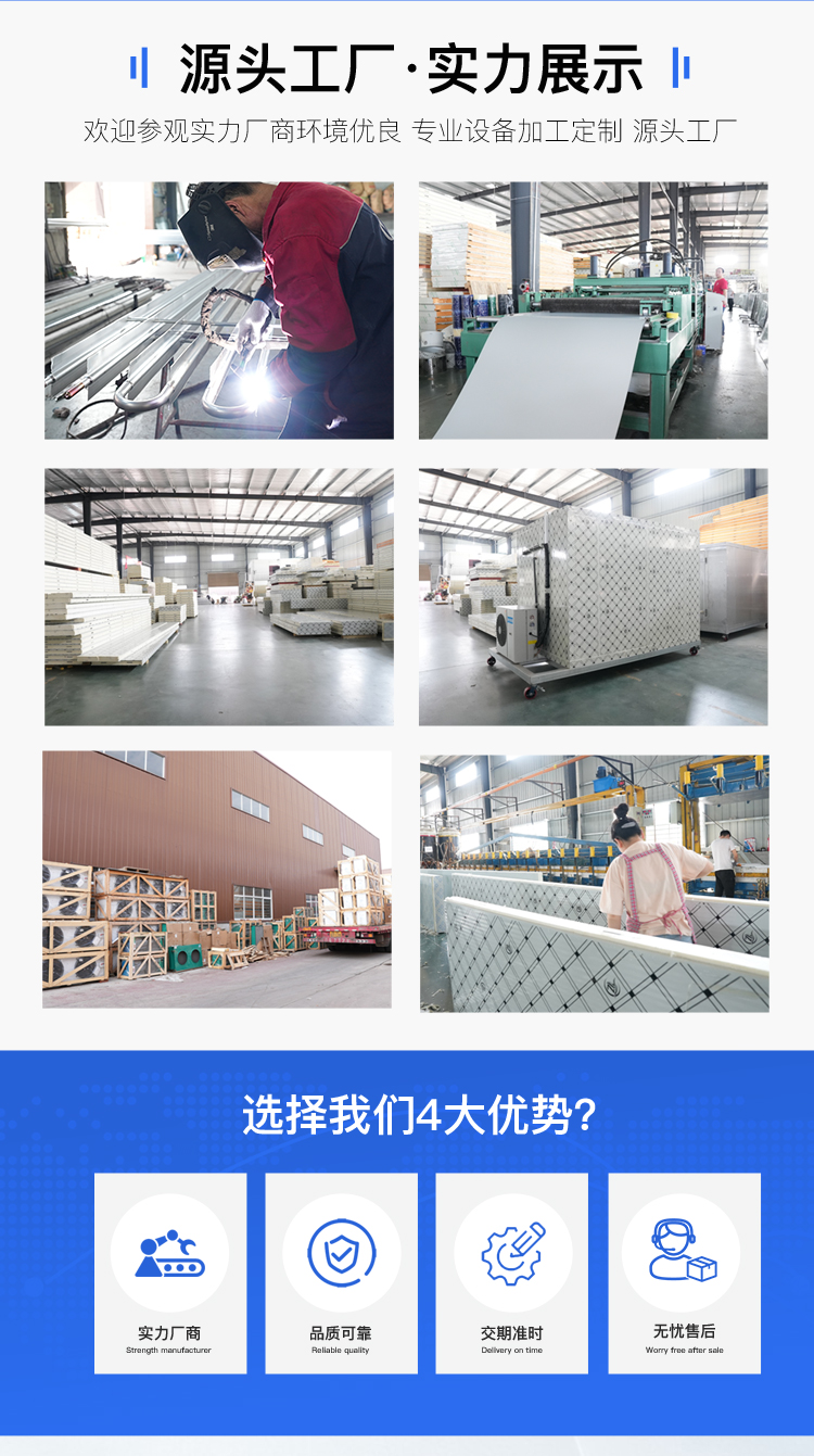 采用优质聚氨酯发泡料,先进设备,优质工艺,B1级阻燃芯材,为您的冷库保温保驾护航!